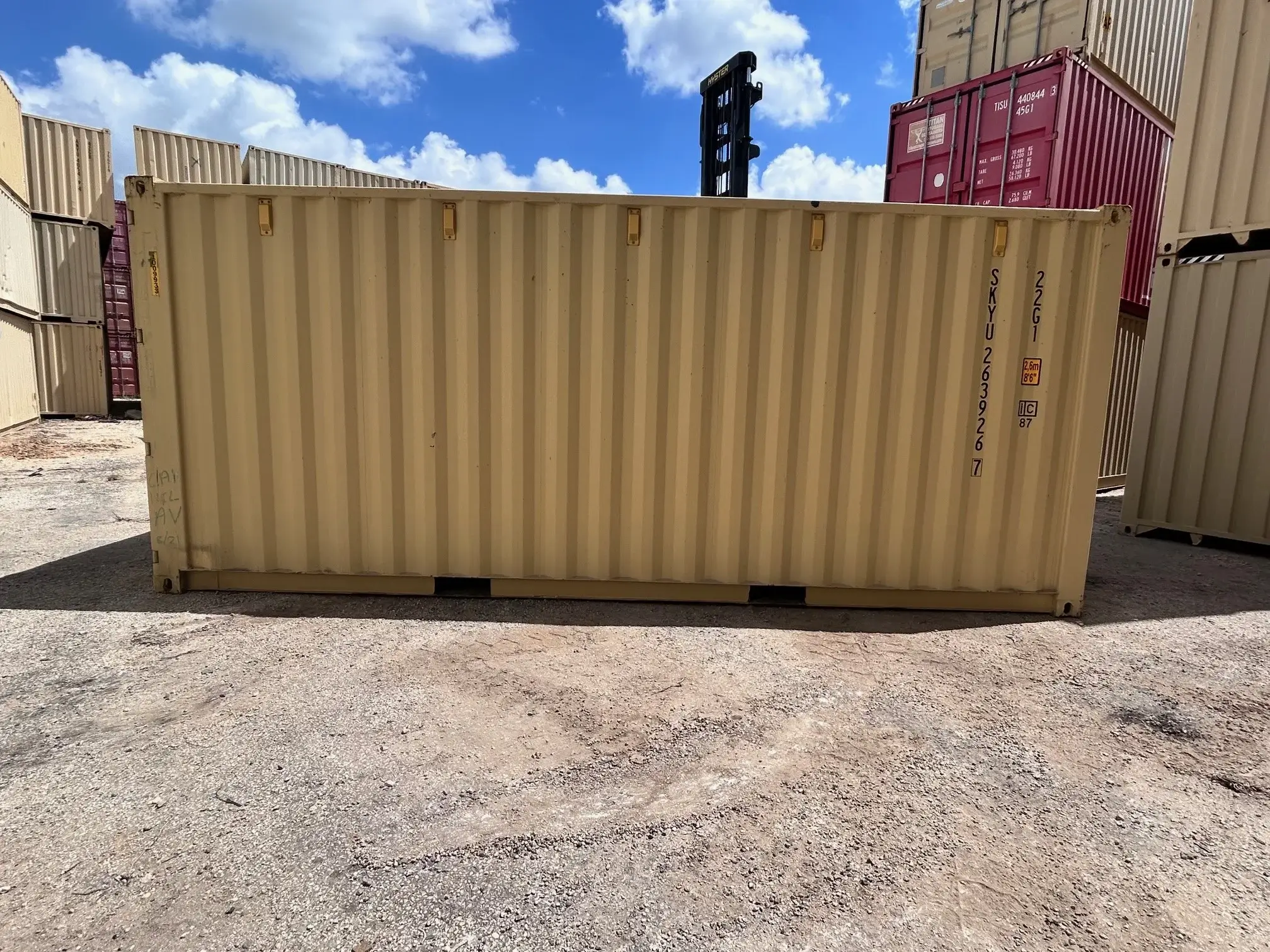 20' steel shipping container inspected and in excellent condition, with minimal cosmetic wear and well-maintained appearance.